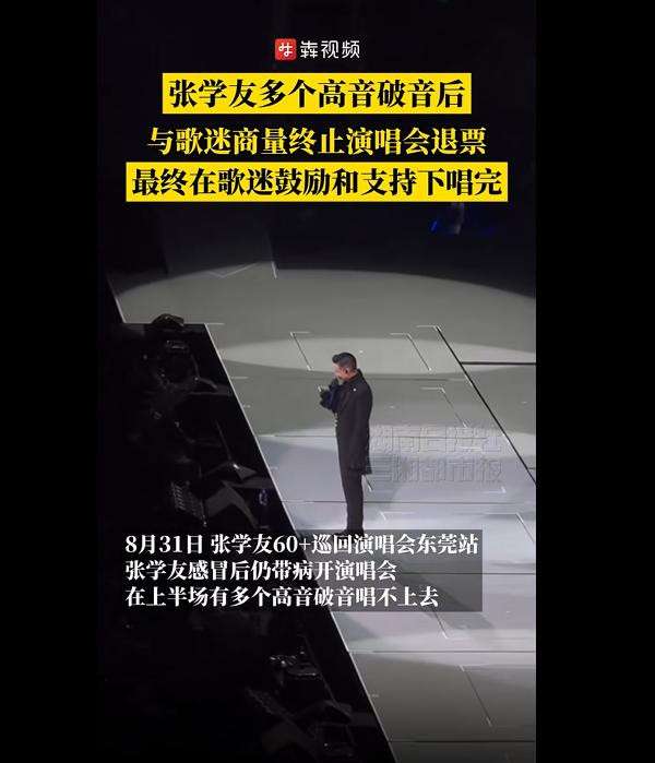 很多歌迷称虽然这是一场不完美的演出,但被张学友的责任与真诚感动,也体会到老一辈演员对舞台的敬畏。也有不少歌迷喊话歌神,希望他早点休息,不用太拼命。