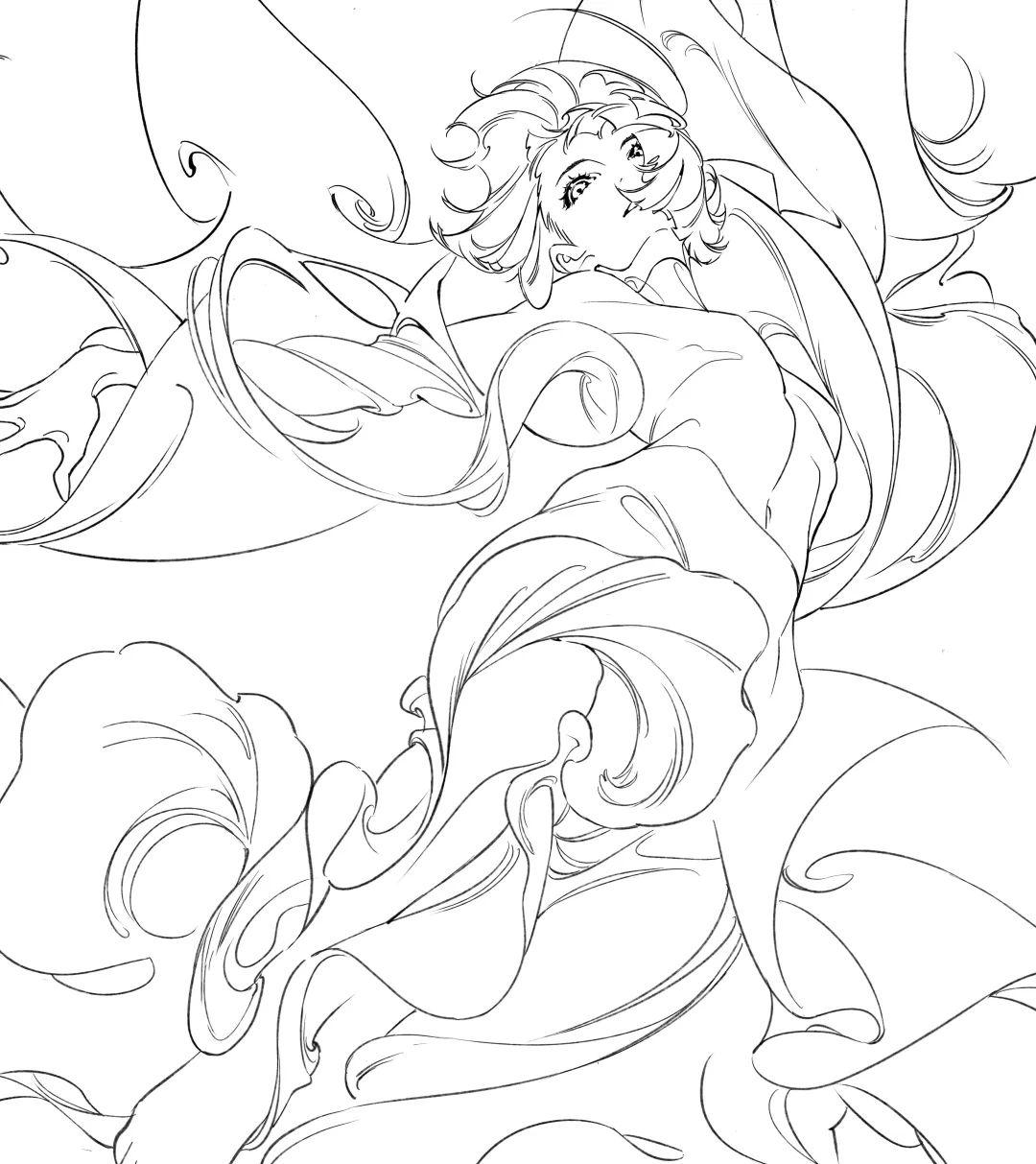 但线稿和半成品就不一样了,它们更接近创作的中间状态,更容易让我们理解一幅画是怎么从无到有、从线到面、从模糊到清晰建立起来的。