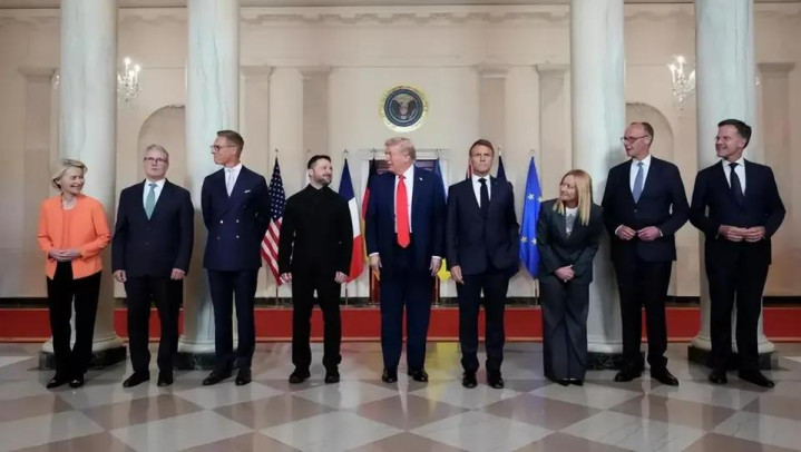 8月18日,特朗普在白宫单独与泽连斯基会谈,欧洲五国英、法、德、意、芬和欧盟主席冯德莱恩,以及北约秘书长吕特组成助威团,立即赶赴白宫要求参加停火谈判。